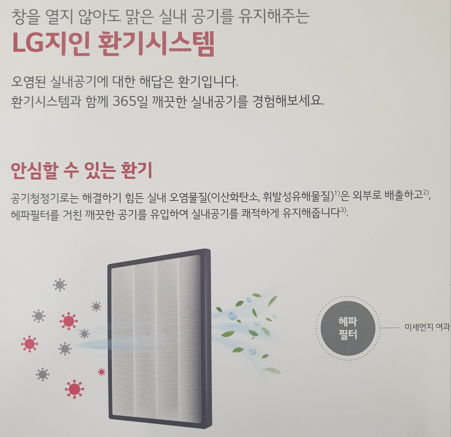 창을 열지않아도 맑은 실내 공기를 유지해주는 LG지인 환기시스템