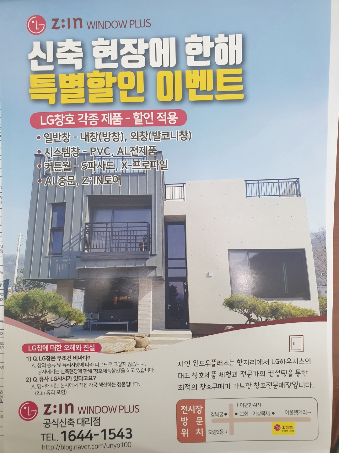 신축현장 특별할인 이벤트를 진행하고 있습니다. 신축에 쓰이는 각종 창에 할인을 더해 고객님을 찾아뵙겠습니다. 언제든지 연락주세요 054-456-9456 010-3209-0082 1644-1543